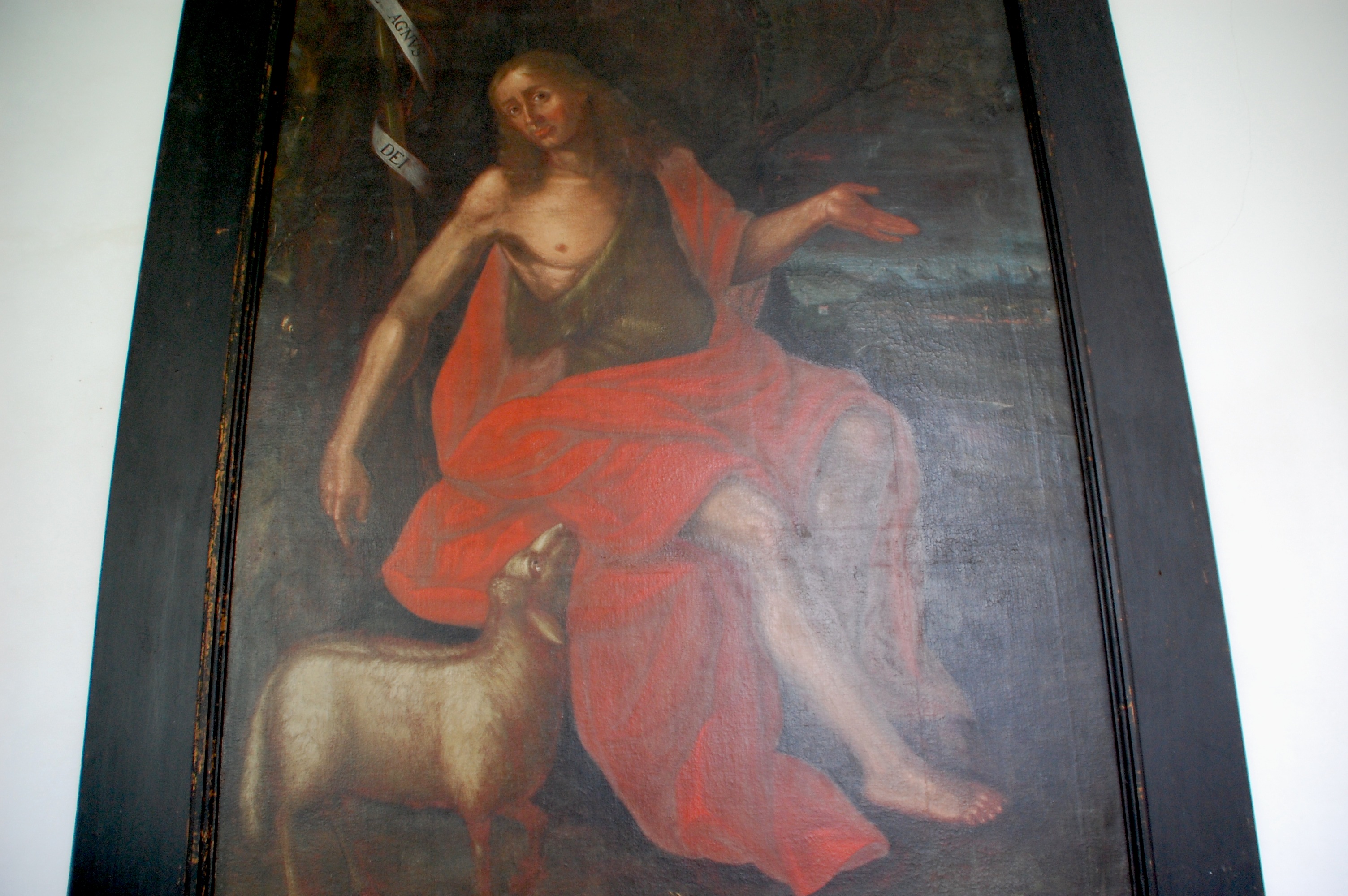 Agnus Dei, das Lamm Gottes, hier auf einem Tafelbild aus dem 17. Jahrhundert. Mit der Linken weist Johannes der Täufer auf die Stadt Frauenfeld mit den Churfirsten im Hintergrund. Durch diese Einbettung wurde den Gläubigen die biblische Geschichte nahegebracht. Bild: kaz.