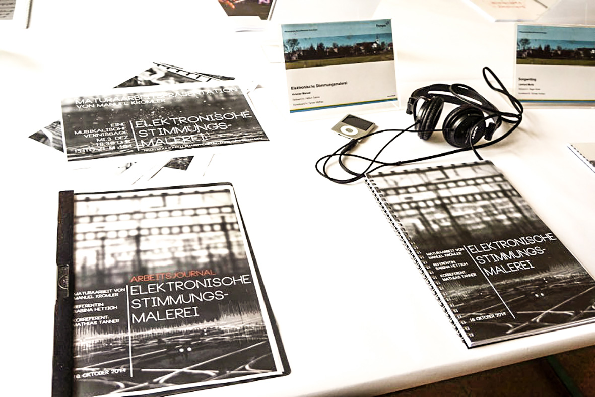 „Elektronische Stimmungsmalerei“, das Thema seiner Matura-Arbeit, ist die logische Weiterentwicklung. „Die Musik wirkt in Zusammenhang mit den schwarz-weiss-Fotos, die ich aufgenommen habe. Sie bringt die Farbe in die Bilder.“ Damit der Rezipient einen vollständigen Eindruck der jeweiligen Stimmungen bekommt, muss er bewusst zuhören.