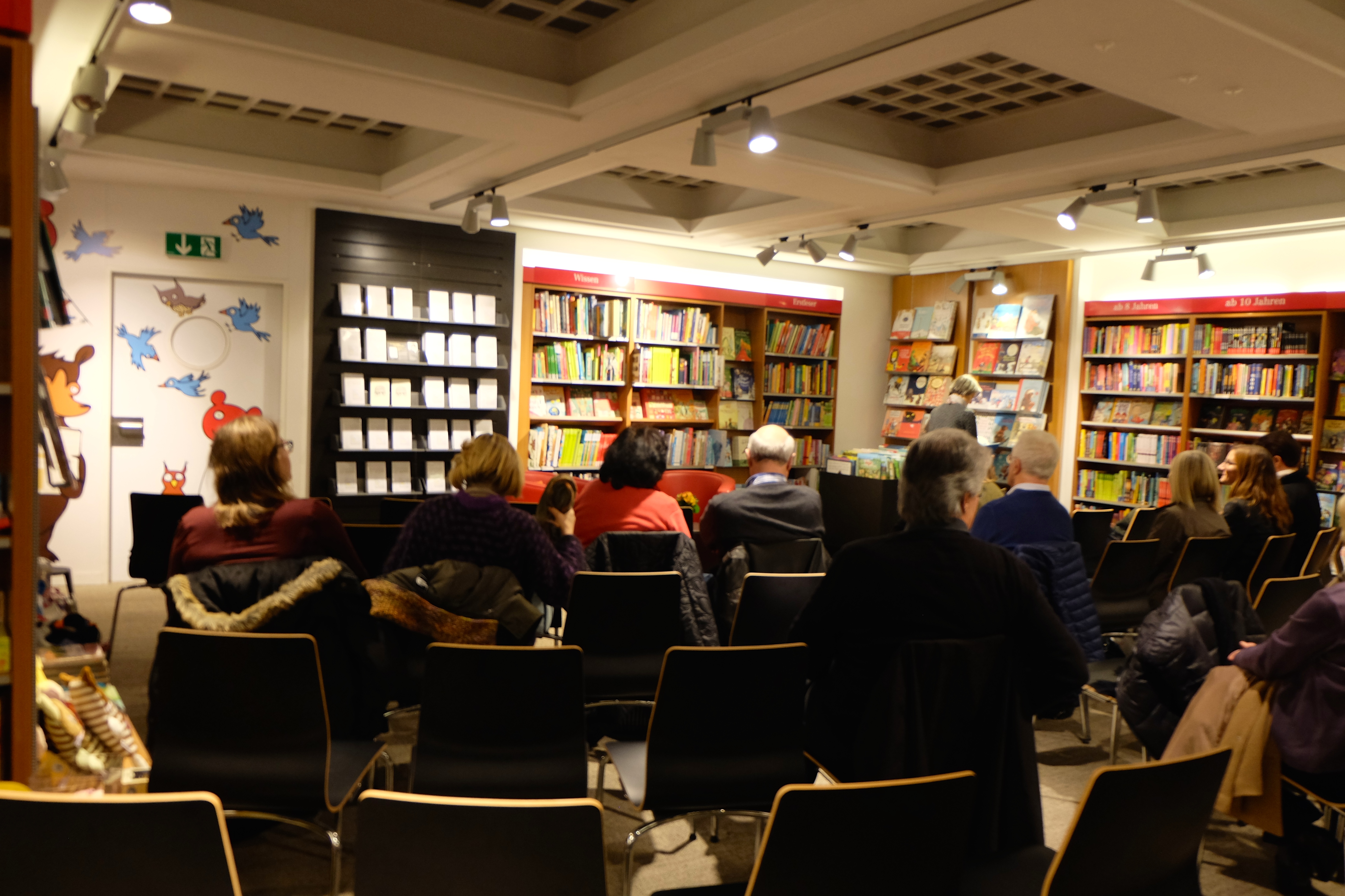 Nach der Lesung war der Andrang gross: Jeder wollte sein Buch signiert haben und einige Sekunden mit Tanja plaudern. Die wiederum wirkte glücklich und gelöst am Abend und konnte sich nach all der Anspannung der letzten Monate und den last-minute-Korrekturfahne-Schlangen und lustigen bis bösen Schnitzern, die sie und ihre Lektorin immer wieder kurz vor der Freigabe gefunden haben (von denen sie dem Publikum mit grossen Augen erzählte und die "nicht gerade das Sicherheitsgefühl in ein fehlerfreies Buch steigern") entspannen und den Trubel geniessen. Trotzdem: "Die ersten Tage habe ich das Paket mit dem druckfrischen Buch, das vor meiner Tür auf mich gewartet hat, nicht öffnen können. Aber jetzt... ist es ok. Nein, mehr als ok. Was mich am meisten freut ist natürlich das Feedback der ganzen lieben Menschen, die mich in den sieben Jahren während der Entstehung des Buches begleitet haben, das ist so wunderbar, das kann man kaum in Worte fassen."