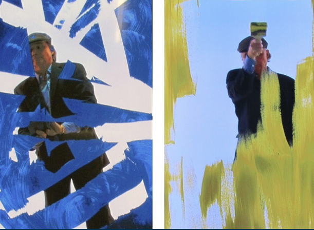 In der Eingangshalle des neuen Swisscom-Gebäudes hängen an einer schwarzen Wand fünf grosse Monitore. Sie leuchten in einem bestimmten Moment je monochrom violett, grün, blau, gelb und rot. Die kräftigen Farben wurden mit einem breiten Pinsel sichtbar schnell und kreuz und quer aufgetragen. Nach einer bestimmten Weile lösen sich die Farben, das heisst, sie werden von Christoph Rütimann, im Anzug und mit Dächlikappe, mit einem Spachtel flink abgekratzt, zuerst auf einem der Monitore, dann auf dem zweiten, schliesslich als Parallelaktion auf allen fünf. Wenn der Künstler auf dem letzten Monitor noch spachtelt, hebt er, weiterhin bemützt in Schale, auf dem ersten zur neuen Malarbeit in anderer Farbe an. Strahlen alle Monitore wieder in verschiedenen Farben monochrom, verharren sie während einiger Minuten in ihrem Kolorit. Eine Wechselschicht aus Malen, Abspachteln und Verharrung dauert sechs Stunden und wird Tag und Nacht repetiert. Die installative Verbindung einer kreativen Idee mit Hinterglasmalerei und einer raffinierten Computerprogrammierung ist irre und witzig. Spannender und stets neu verblüffend könnte eine serielle Monotonie nicht sein.