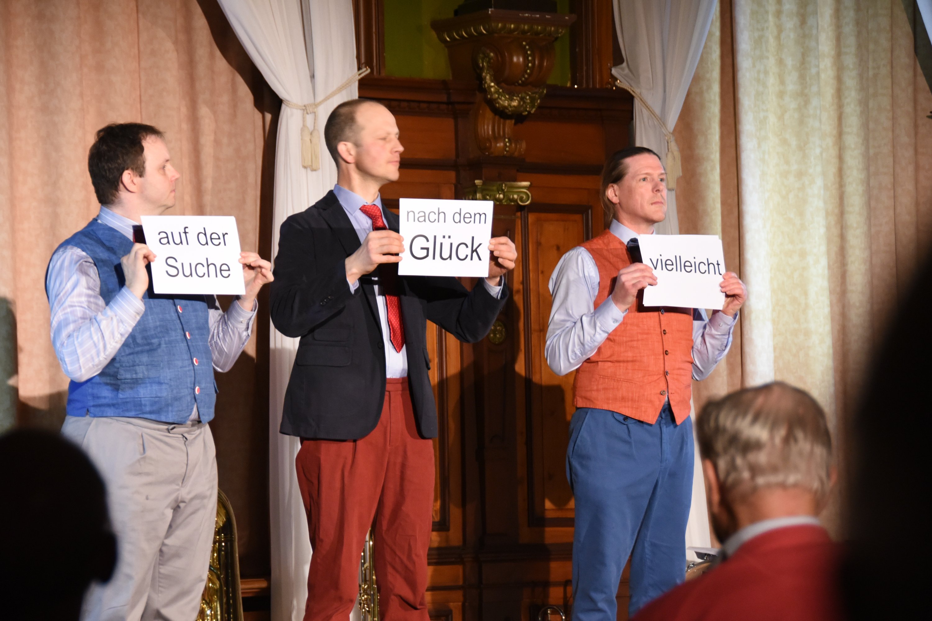 «Glück ist kein Solo», schreiben die fünf Musiker in ihrer Programmansage. Glück kann auch ein Lieblingslied sein. Davon gibt es viele in diesem Programm und bei den Protagonisten auch unterschiedliche Vorstellungen davon, wie das Publikum beim frechen Hin und Her feststellte.