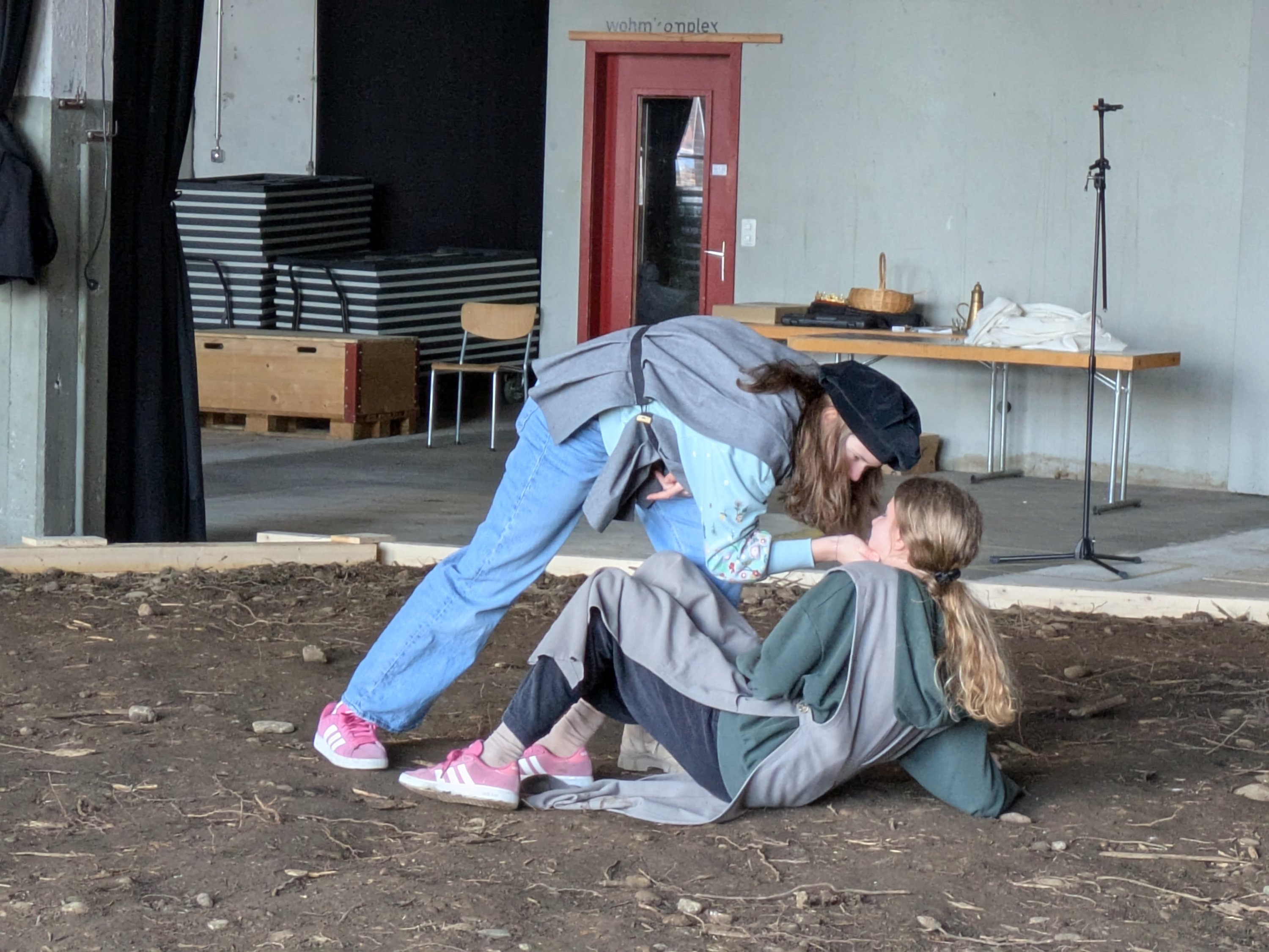 Regisseurin Claudia Rüegsegger unterbricht das Spiel, springt vom Regietisch auf, eilt zur Bühne. Sie zeigt die Szene erneut: «Mach ein Geräusch, wenn du sie schlägst.» Eine sehr körperliche Szene, die Choreografin Amelie Lisa koordiniert. «Das ist gewollt, sie erarbeiten sich die Rolle durch Körperlichkeit», sagt Amelie Lisa, die selbst ein Kind des Momoll-Theaters ist und dort schon als Jugendliche spielte. Seit zwei Jahren ist sie in leitender Funktion dabei.