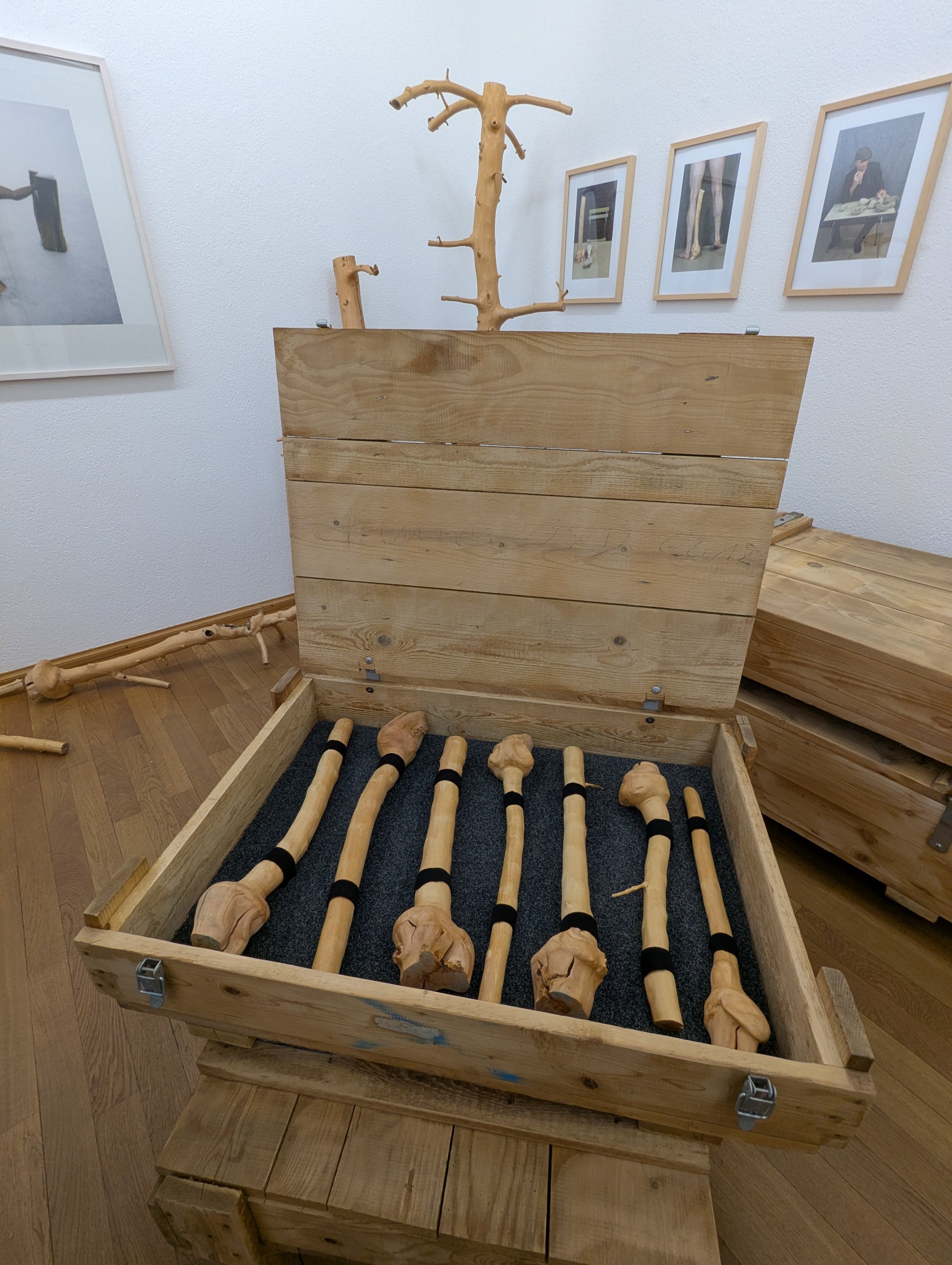 In diesem Zusammenhang lässt sich auch die «Kulturkeule» verstehen. Ihr Ursprung liegt in der Obstkultur: Durch die Veredelung von Bäumen entstehen Verdickungen am Stamm, sogenannte Keulenköpfe. Rütimann greift diese Formen auf und überführt sie in einen neuen Kontext und macht daraus eine Art künstlerisches Werkzeug – kein Werkzeug im funktionalen Sinn, sondern ein Objekt, das Vorstellungen aktiviert und erst in der Hand des Benutzenden eine Bedeutung erhält.