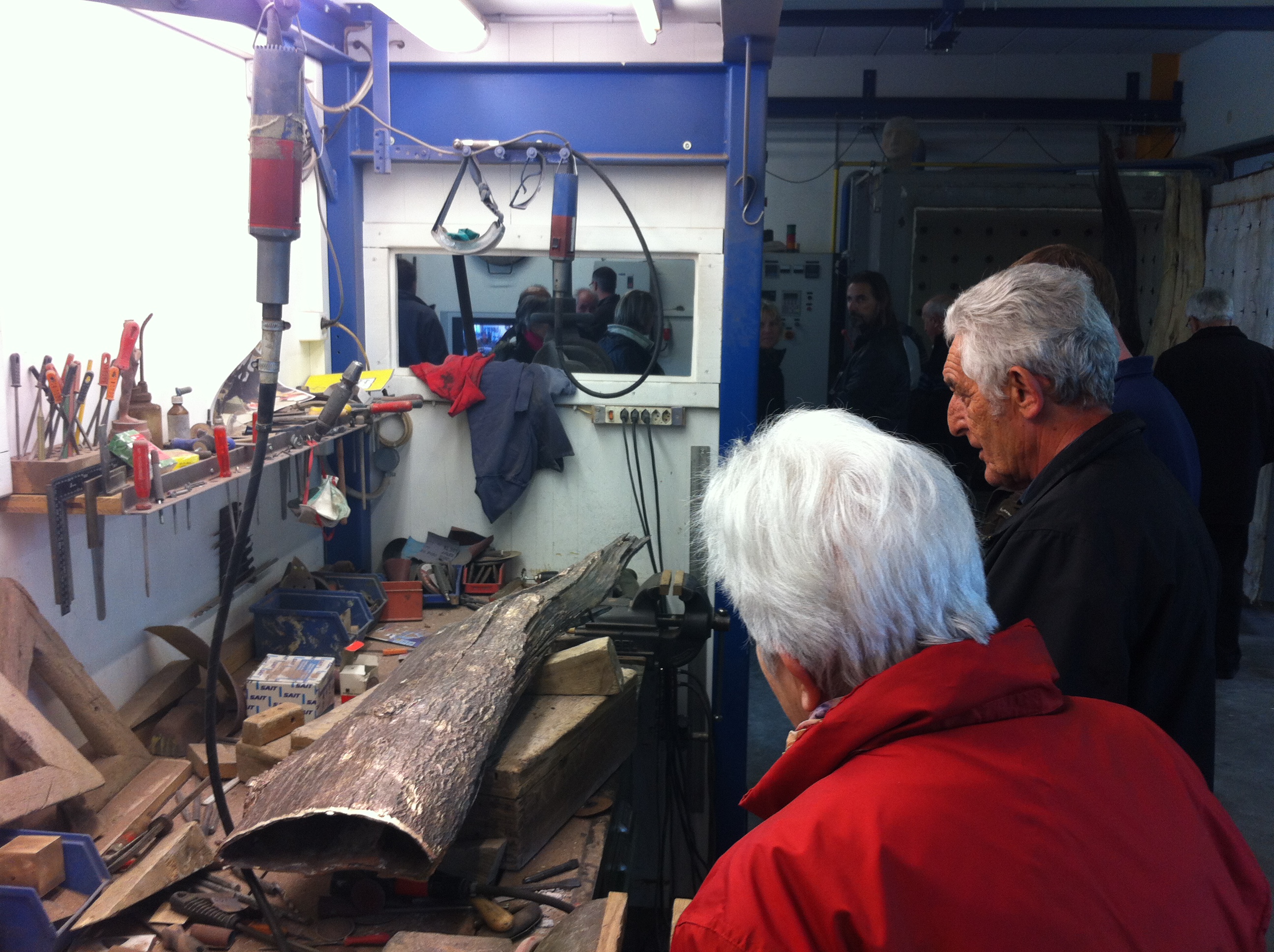Steinbildhauer und Kunstgiesser Cornel Hutter erläutert den zahlreichen Interessierten die 24 Schritte vom Rohling bis zum fertigen Bronzeobjekt.