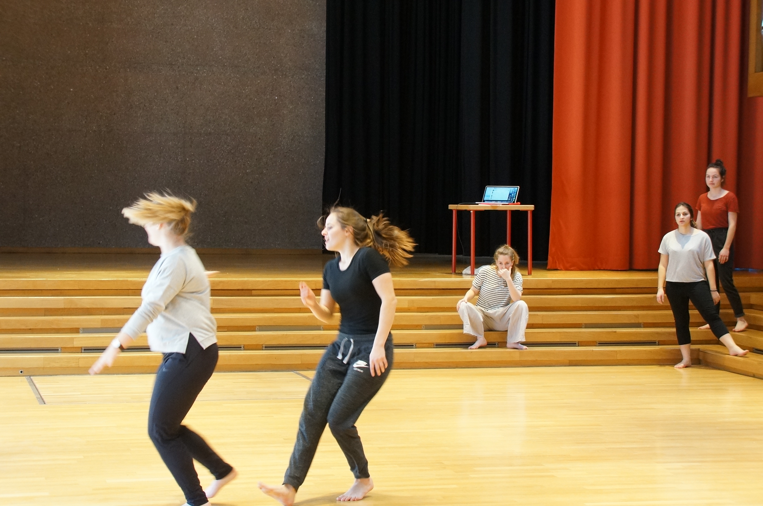 Rund ein Dutzend Schülerinnen aus den vierten Klassen hat sich am Morgen in der Aula der Pädagogischen Maturitätsschule Kreuzlingen eingefunden. Schon die Aufwärmübung vor ihrer speziellen Tanzstunde ist ungewöhnlich: Sie stehen im Kreis und werfen sich mit Gesten und Lauten jeweils ein „Zwisch“ oder ein „Kabumm“ zu. Schnell merken sie: Nonverbale Kommunikation kann lustig sein, erfordert aber auch einiges an Konzentration. Auch die folgenden Übungen haben es in sich. Zur Musik sollen die jungen Frauen aufeinander zulaufen, sich begegnen und voneinander weglaufen. Mal berühren sie sich, mal weichen sie aus. Richtig schwierig wird es dann, als sie paarweise „Baum und Koalabär“ spielen. Ein Mädchen bildet ein Klettergerüst, das andere windet sich im Takt zur Musik um es herum und versucht das Gleichgewicht zu halten. Manch ein Koala erliegt der Schwerkraft, manch ein Baum bricht zusammen. Während sich die Tänzerinnen verbiegen, wird viel gelacht – lächerlich macht sich jedoch niemand.
