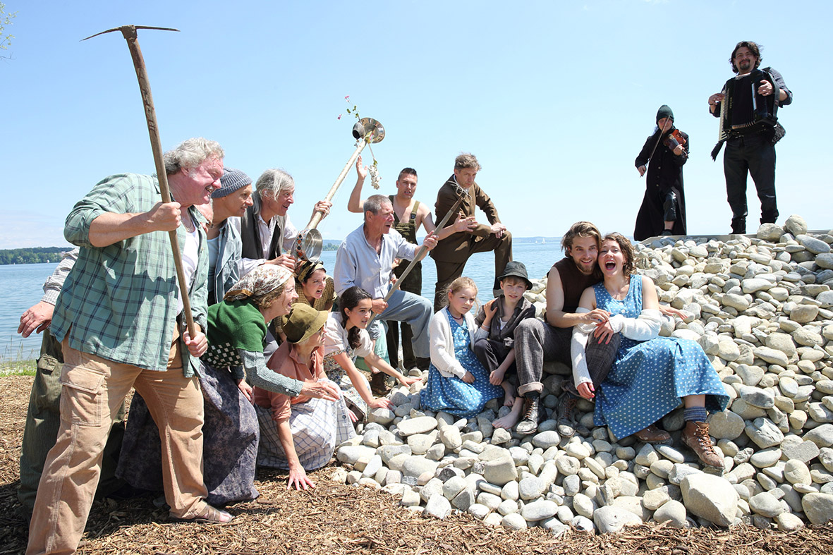 Zwischen den jungen Hauptdarstellern stimmte die Chemie sofort. Anna Blumer, die gerade in Wien die Schaupielschule abgeschlossen hat, sieht in derben Wanderschuhen, Wollsocken und hellblauem Baumwollkleid aus wie ein waschechtes Landkind. „Für mich ist diese Hauptrolle eine schöne Herausforderung. Die Naturbühne am Wasser ist der aussergewöhnlichste Spielort, den ich kenne.“