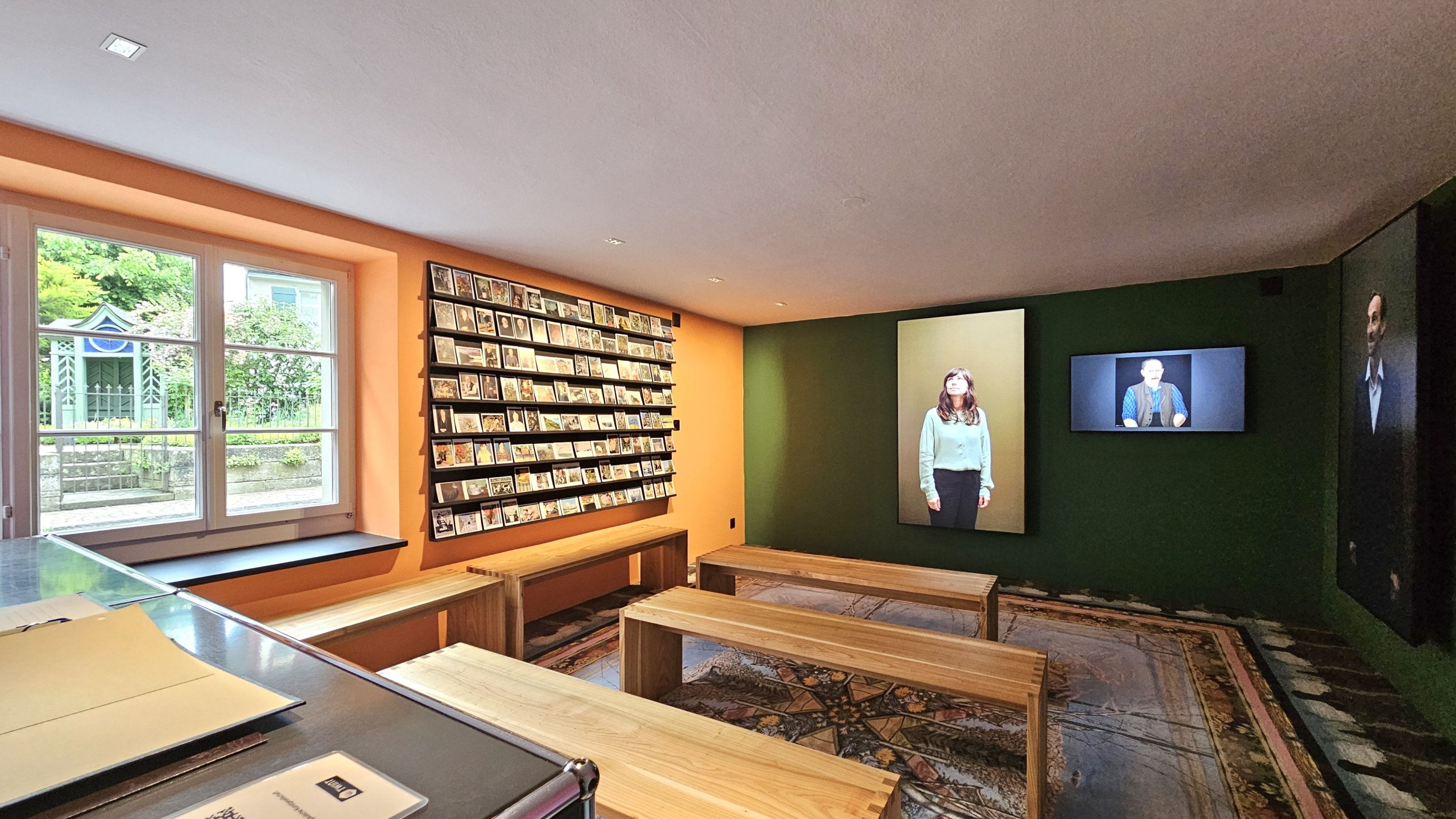 Herzstück der neuen Vermittlung ist eine Videoinstallation mit Anja Tobler und dem Schauspieler Marcus Schäfer in der Rolle eines Kunsthistorikers. In einem inszenierten Zwiegespräch sprechen sie über die Bilder, Zeichnungen und Fotografien. Klug inszeniert und persönlich zugleich. Kein Vortrag, kein Museumston, vielmehr ein Gespräch, das einlädt, sich einzulassen. Das Publikum sitzt zwischen hochformatigen Bildschirmen. Man fühlt sich gemeint.