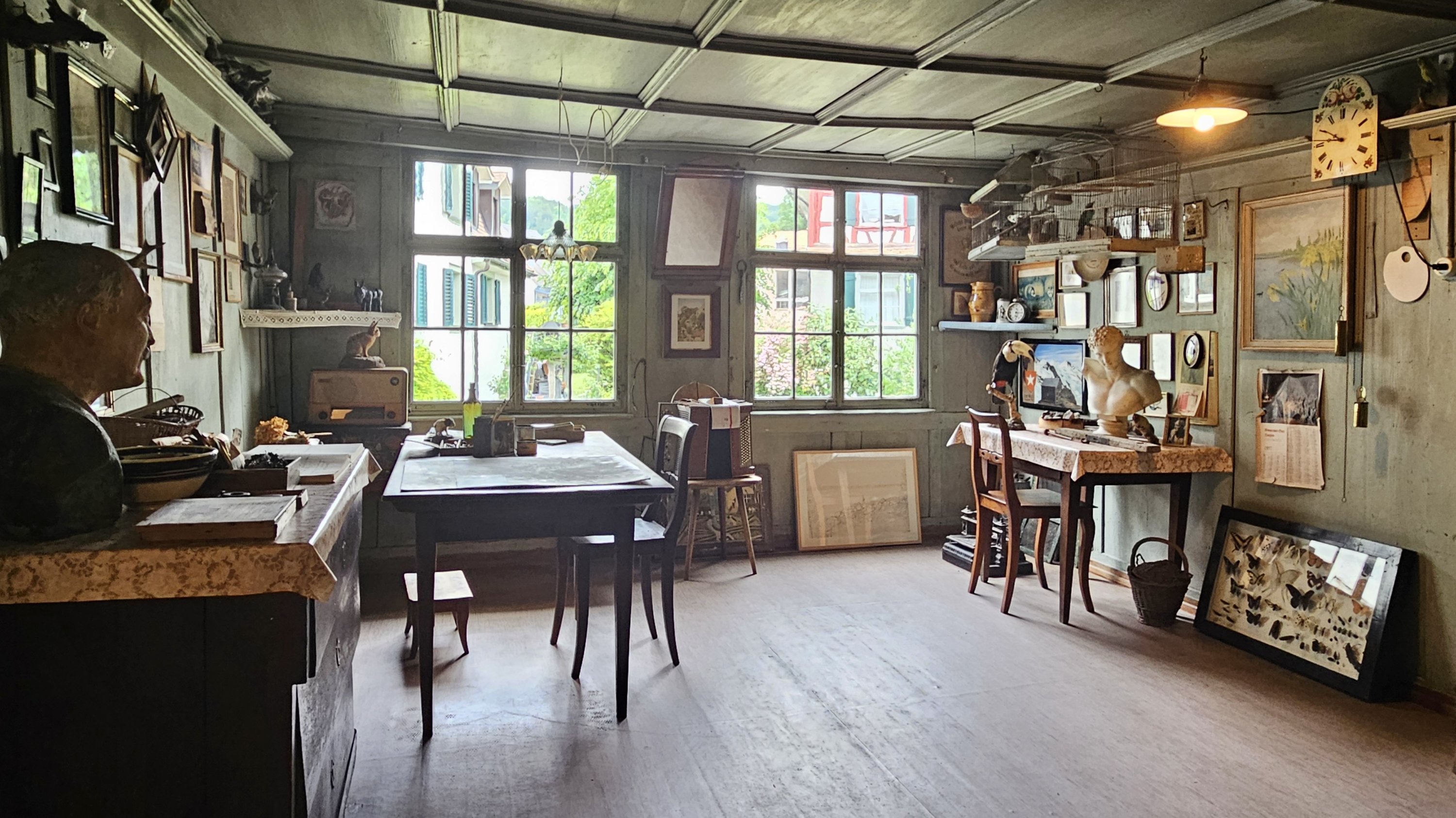 Ohne Bettina Huber wäre das Haus nicht, was es ist. Sie kennt Dietrichs Welt, macht Führungen, beantwortet Fragen und trägt Geschichten weiter. Ein wahres Geschenk sei sie, sagt Landert voller Respekt. Für sie selbst war es ein Glücksfall. Zur richtigen Zeit am richtigen Ort. Die Zusammenarbeit mit der Kunstgesellschaft laufe bestens, die Dorfgemeinschaft habe sie aufgenommen. Ursprünglich aus Frauenfeld, kümmert sie sich bis heute um die Dinge hier. Inzwischen hilft ein kleines Team mit, damit sie nicht jedes Wochenende Dienst schieben muss. «Ein klassischer Rentnerjob halt», bemerkt sie lachend. Und sie geniesst es.