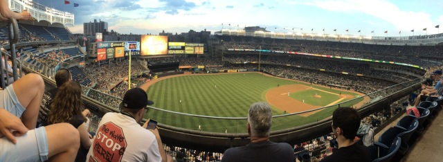 Hmm. Da war so einiges los letzte Woche. Where to begin? Ah ja. Yankees-Baseball! Es gilt ja als eine „All-American-Experience“, sich ein MLB-Spiel anschauen zu gehen. Das will man sich also nicht entgehen lassen als kleiner Schweizer. Und so tingle ich mit meinen zwei Jazz-Buddys Noam und Thierry zum Yankee-Stadium in der Bronx. Und was für ein Stadium. Klein ist es nicht.