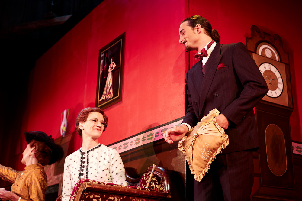 Besuch der alten Dame: Lady Bracknell (Doris Haudenschild, an der Premiere für ihr 50-jähriges Bühnenjubiläum geehrt) mit Butler Lane (der letztjährige «Romeo» Rafael Luca Oliveira).