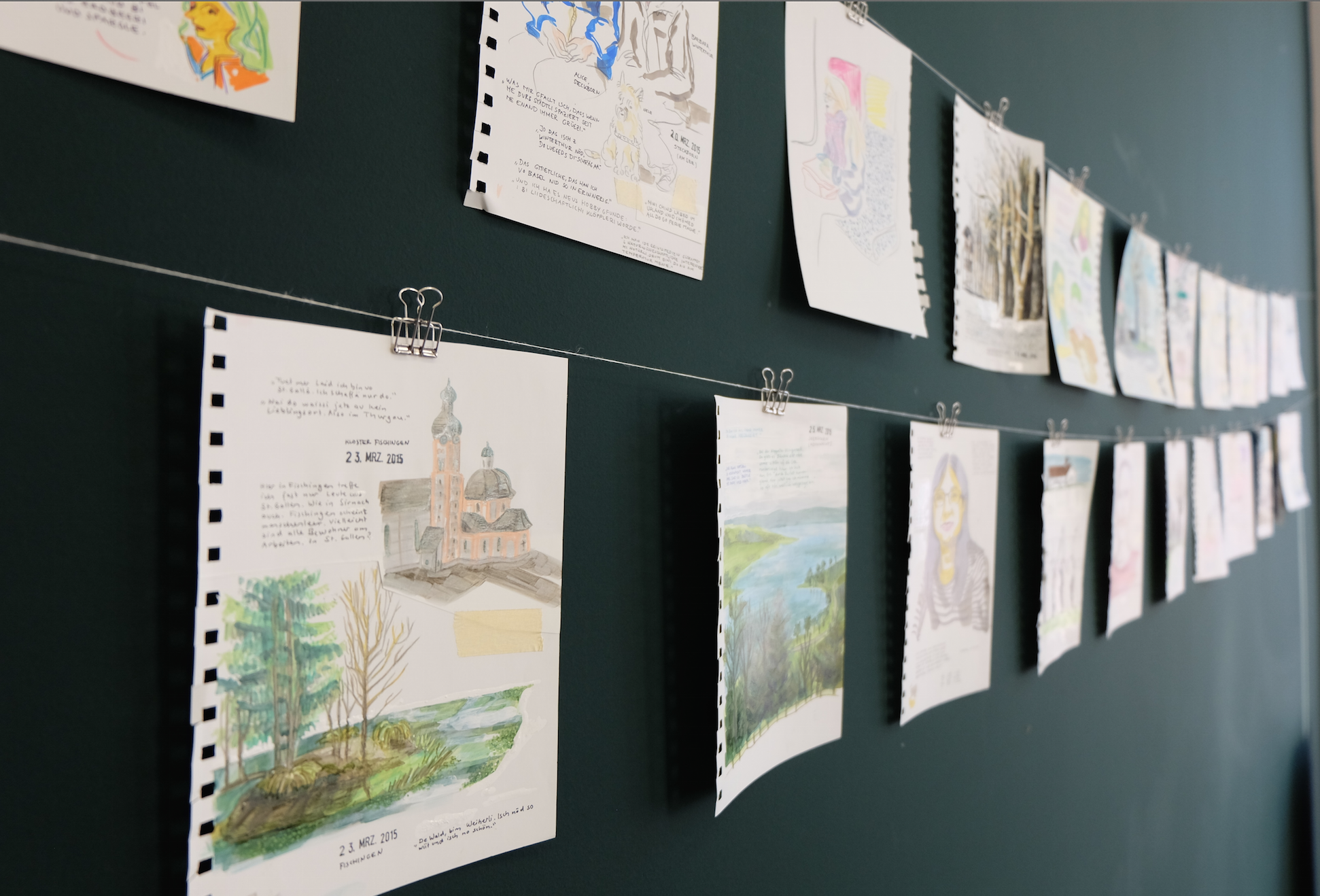 Die Originalskizzen der Künstlerin Rina Jost wurden am Abend im Stiftungsbüro ausgestellt. (Bilder: Patrizia Barbera)