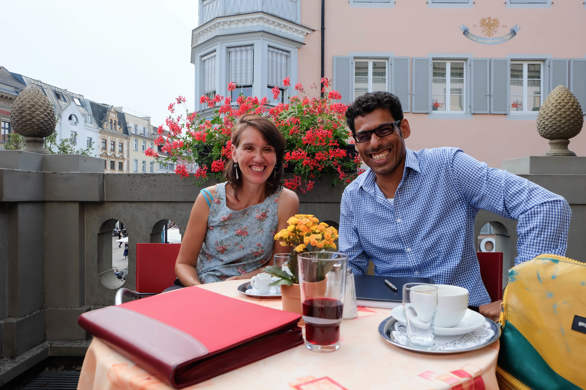 An einem sonnigen Nachmittag sitzen Conrad und Al Shahmani bei einen Kaffee beieinander und sprechen über die Idee hinter ihrem Projekt. Zuvor haben sie gemeinsam an bereits verfassten Texten gearbeitet, die Stimmung ist heiter.