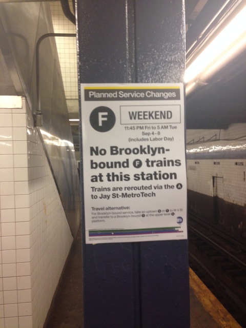 2.Die MTA führt im Sommer die notwendigsten Reparaturarbeiten an den U-Bahnschienen durch. Häufig sieht man dann solche Zettel an den Stationen hängen: