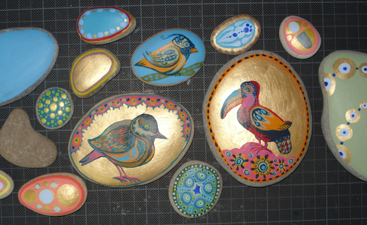 Die werden bei mir im Atelier zu bemalten Glücks-Steinen.