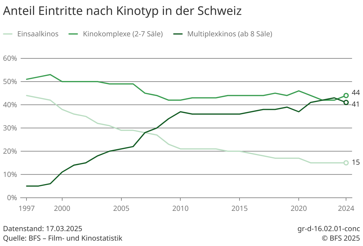 Blickt man in die schweizweite Statistik der Kinoeintritte, dann ist der Erfolg des Roxy noch ungewöhnlicher. Fast überall gehen die Eintritte in so genannte Einsaalkinos wie das Roxy zurück, die Multiplexe dominieren vielerorts. Aber in Romanshorn schätzt man das kleine, feine Kino so sehr, dass es seit Jahren stabil Programm machen kann. Und nicht nur das.