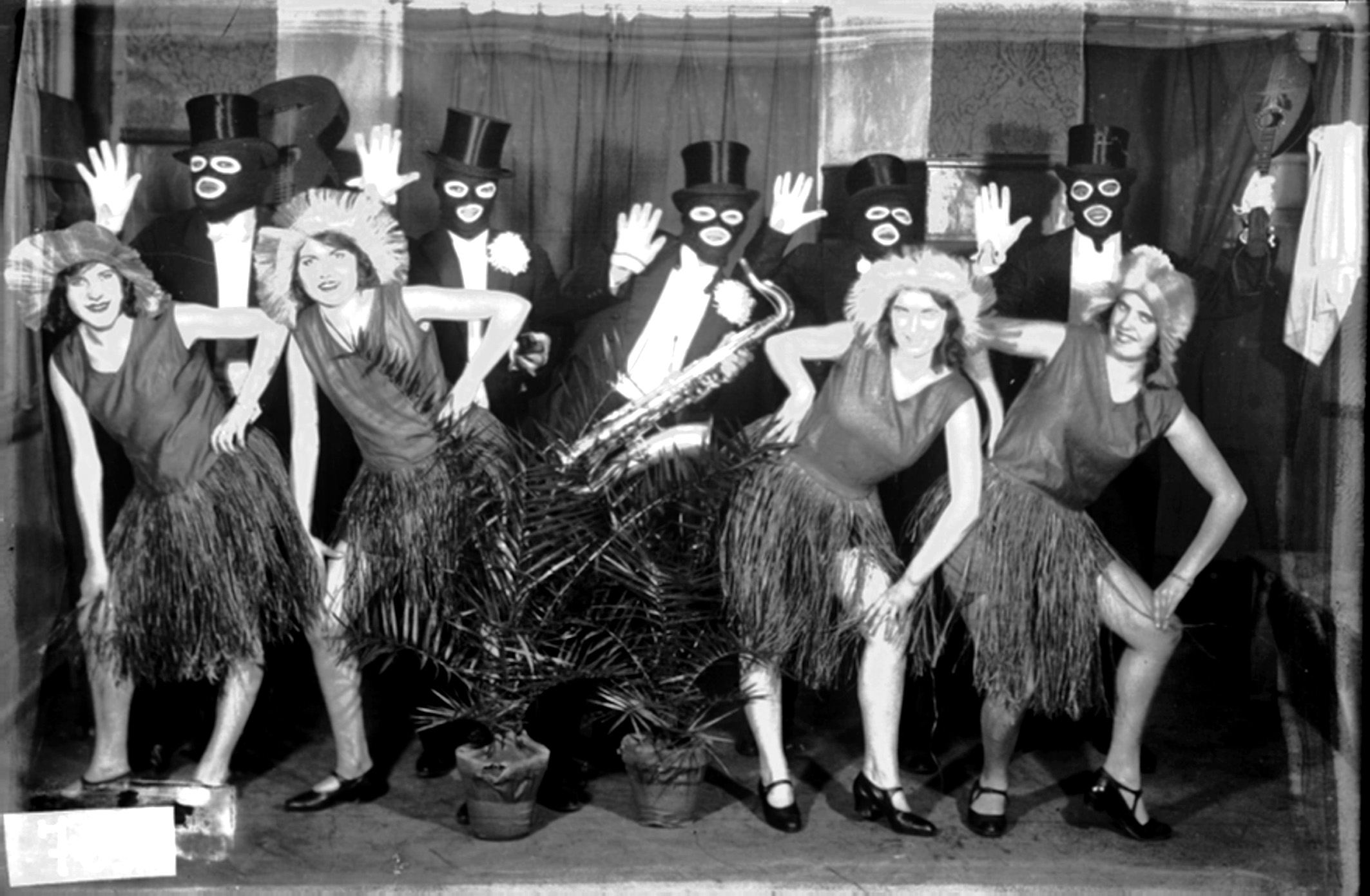 Mitte der zwanziger Jahre kam es zu einer kurzen Blüte der Lustbarkeiten, mit kürzeren Röcken, Bubiköpfen und neuen Freiheiten für die Frauen. Endlich waren sie ihre Rolle als schmückendes Beiwerk für die Herren los, wenn auch nur für kurze Zeit. Die Kapellen spielten Jazz, Foxtrott und Tango, der 1916 in Zürich gegründete Dadaismus inspirierte zu abenteuerlichen Kostümen. Vom Bürgertum wanderte die Fastnacht in die Arbeiterbewegung, ein Thurgauer Umzug in den 1920-er Jahren zeigt einen Radsportverein in toller Formation.