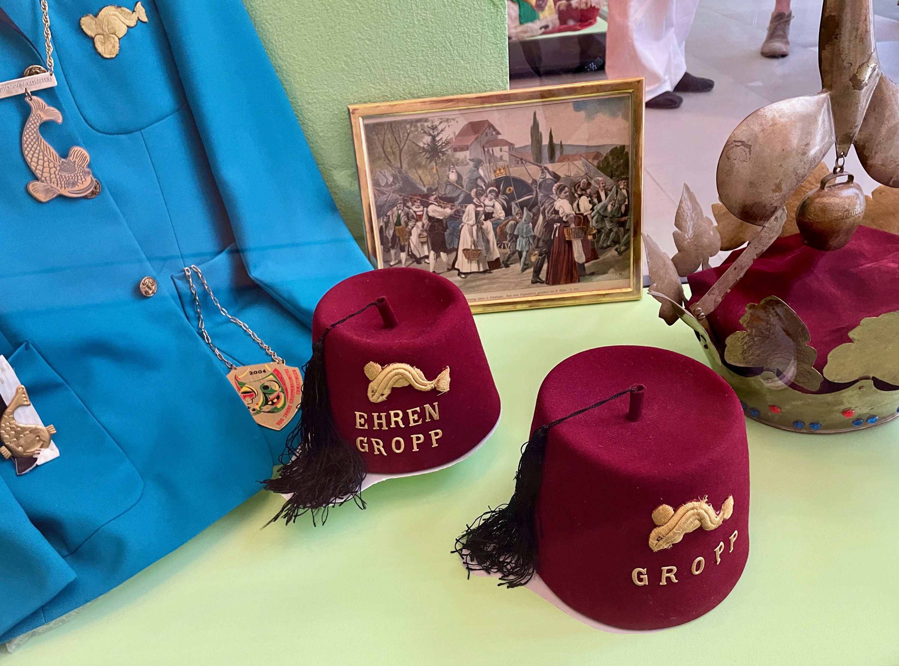Ein Festtag von der Herren Gnaden, siehe Mythos 1. Tatsächlich stammt der Tanz um „König Gropp“ vom Ende des 19. Jahrhunderts. Seit den 1920-er Jahren tragen die Mitglieder des Groppen-Komitees einen roten Fez, welchen der Ermatinger Müllermeister Walter Koch von seinen Wanderjahren aus der Türkei mitgebracht hatte. Vorneweg im grossen Umzug, der nur alle drei Jahre stattfindet, reiten „Abessinische Reiter“ in Beduinenkleidung. Eine kulturelle Aneignung, die man auch als geschätztes Mitbringsel sehen könnte.