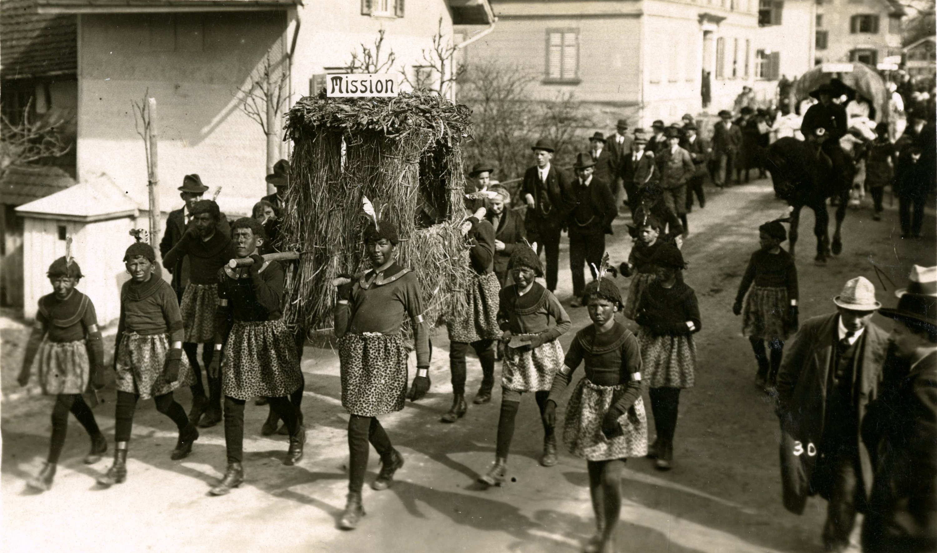 Im Konstanzer Stromeyersdorf, damals „weit draußen in der Pampa“, gründete man nach 1906 den Verein „Negerdorf“. Ungeniert spielte man die Kolonialmythen nach: Eine Gruppe von Jugendlichen färbte sich die Gesichter schwarz und formte die „Wulstlippen“ mit umgebundenen Wiener Würstchen.