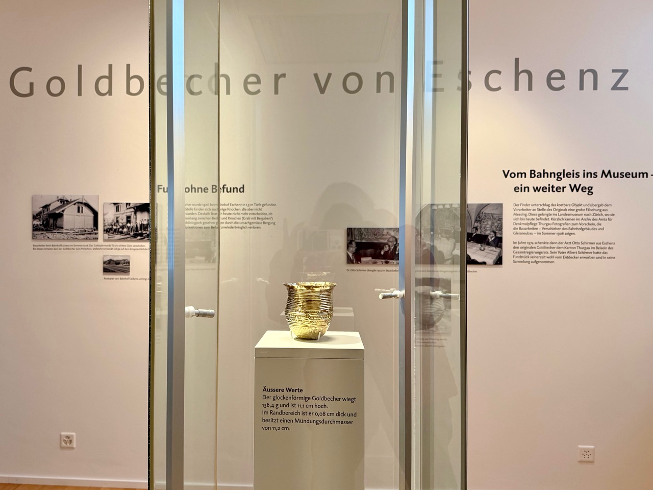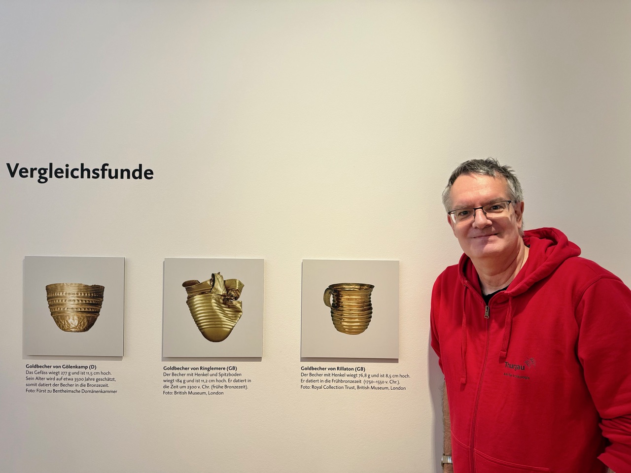 «Und dann haben wir vor fünf Jahren in Pfyn eine Scherbe eines Glockenbechers gefunden, der die gleiche Form wie unser Goldbecher hatte, aber eben aus Keramik war. Und in der Nähe des Funds lag Holzkohle, die wir genau datieren konnten. Deshalb gehe ich davon aus, dass unser Becher etwa 4400 Jahre alt ist und damit vom Ende der Jungsteinzeit oder der frühen Bronzezeit stammt.»
