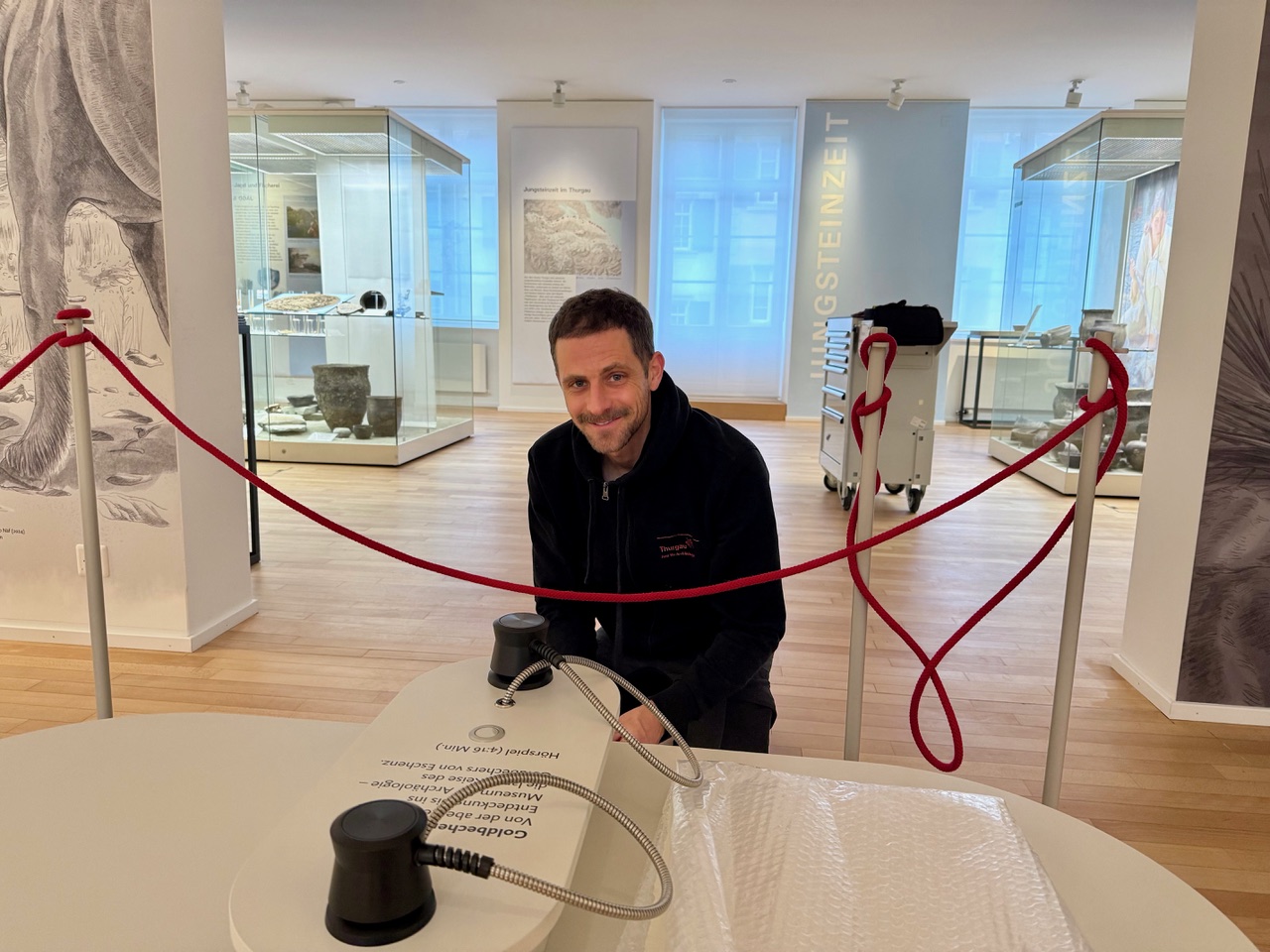 Die Säle für die Bronzezeit und die Pfahlbauer sind bereits renoviert, nun war der «goldene Becher» an der Reihe. Zuständig für die Präsentation ist neben der Archäologin Eva Riediker der Designer Rico Pengler. Er sagt: «Wir gehen von den Inhalten aus. Hier waren der Raum und der Ausstellungsgegenstand gegeben. Dann versucht man, im Rahmen der finanziellen Mittel die Geschichte neu zu interpretieren.»