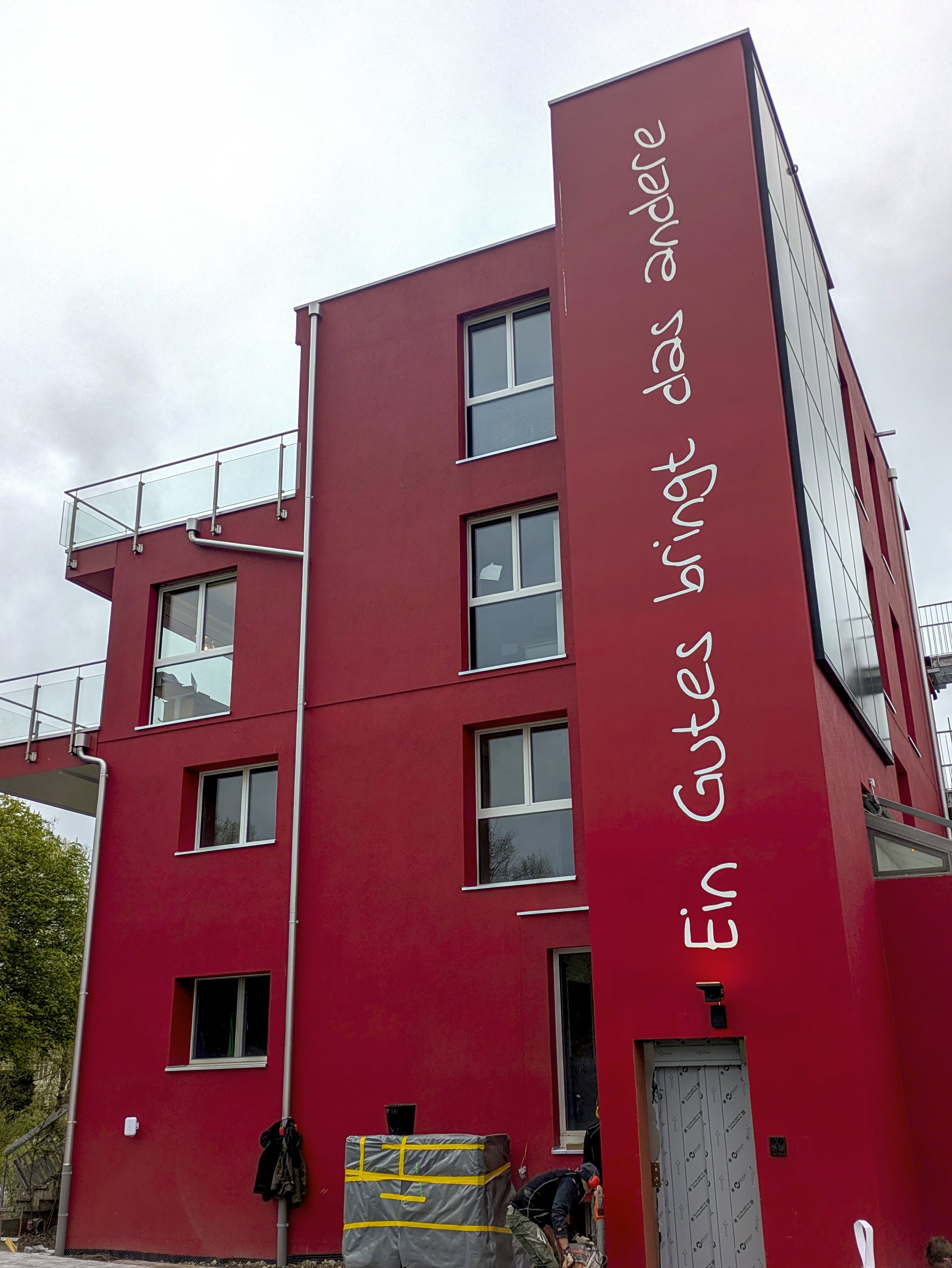 An der Fassade prangt ein Zitat von Niklaus von Flüe aus dem Jahr 1482: «Ein Gutes bringt das andere.» Ursprünglich sei dies ein Rat gewesen zur Einigung zwischen Konstanzern und den Eidgenossen. Vetsch fand dies passend, weil es zeige, dass man nicht alle Probleme auf einmal lösen müsse.