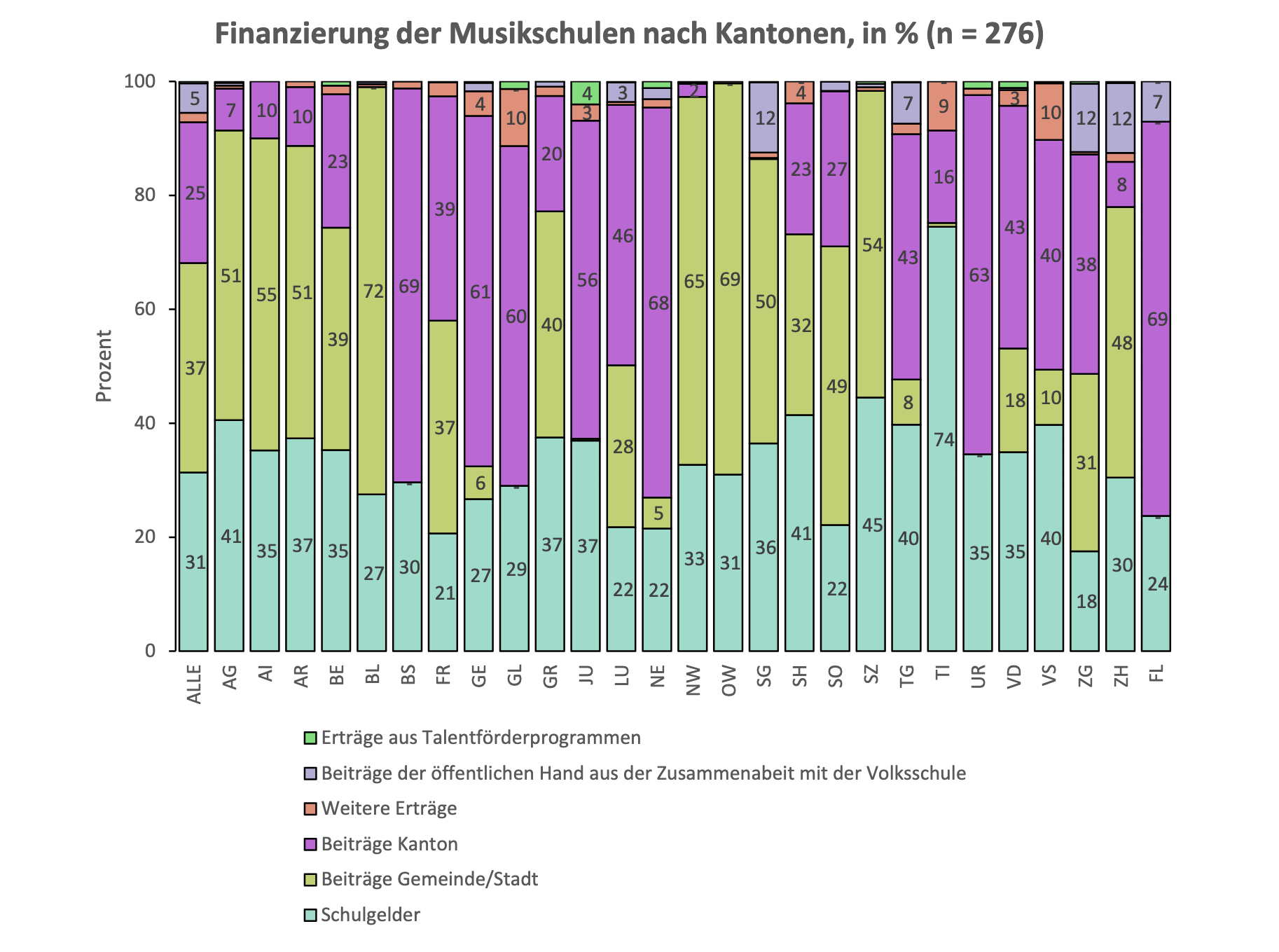 Zur Begründung heisst es in dem Gutachten: «Hintergrund ist, dass die aktuelle Finanzierung durch den Kanton im Vergleich zu anderen Kantonen auf der grosszügigen Seite ist. Gemäss einer Erhebung des Verbands Musikschulen Schweiz aus dem Jahr 2025 gibt es einige Kantone mit einem niedrigeren Beitrag an die Betriebskosten (bspw.: Graubünden 30 Prozent, Schaffhausen 27,5 Prozent, Zürich 10 Prozent). Gleichzeitig gibt es aber auch Kantone, die die Musikschule als Gemeindeaufgabe ansehen und keine Kantonsbeiträge dafür leisten (bspw. Basel-Landschaft).»