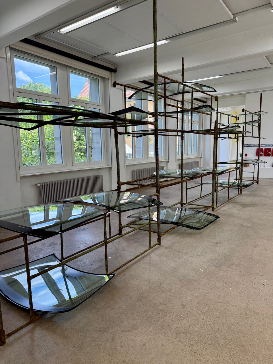 Nachhaltigkeit ist genauso Thema im Kunstraum: Die Installation «Nail Bar» ist während des Festivals gut besucht. Das Kollektiv «Idle Hands» hat alte Windschutzscheiben auf Gestellen so arrangiert, dass man sich auf fast gruselige Weise an künstliche Fingernägel erinnert fühlt. Kurator Reto Müller erklärt seine Motivation beim Festival mitzumachen: «Wir sind nicht nur Nachbarn, sondern als Mitglied auch Teil vom Kult-X. Es ergeben sich wunderbare Synergien, und es gibt einen guten Austausch – auch vom Publikum.» Die angesprochenen Synergien liegen an diesem Tag besonders auf der Hand. Der Kunstraum hat einen eigenen Zugang zum Kult-X-Garten und promotet bei der Veranstaltung seine Teilnahme am «Festival der Vorgärten». «Am 21. Juni gibt es hier die Revue der Vorgärten», so der Kurator.